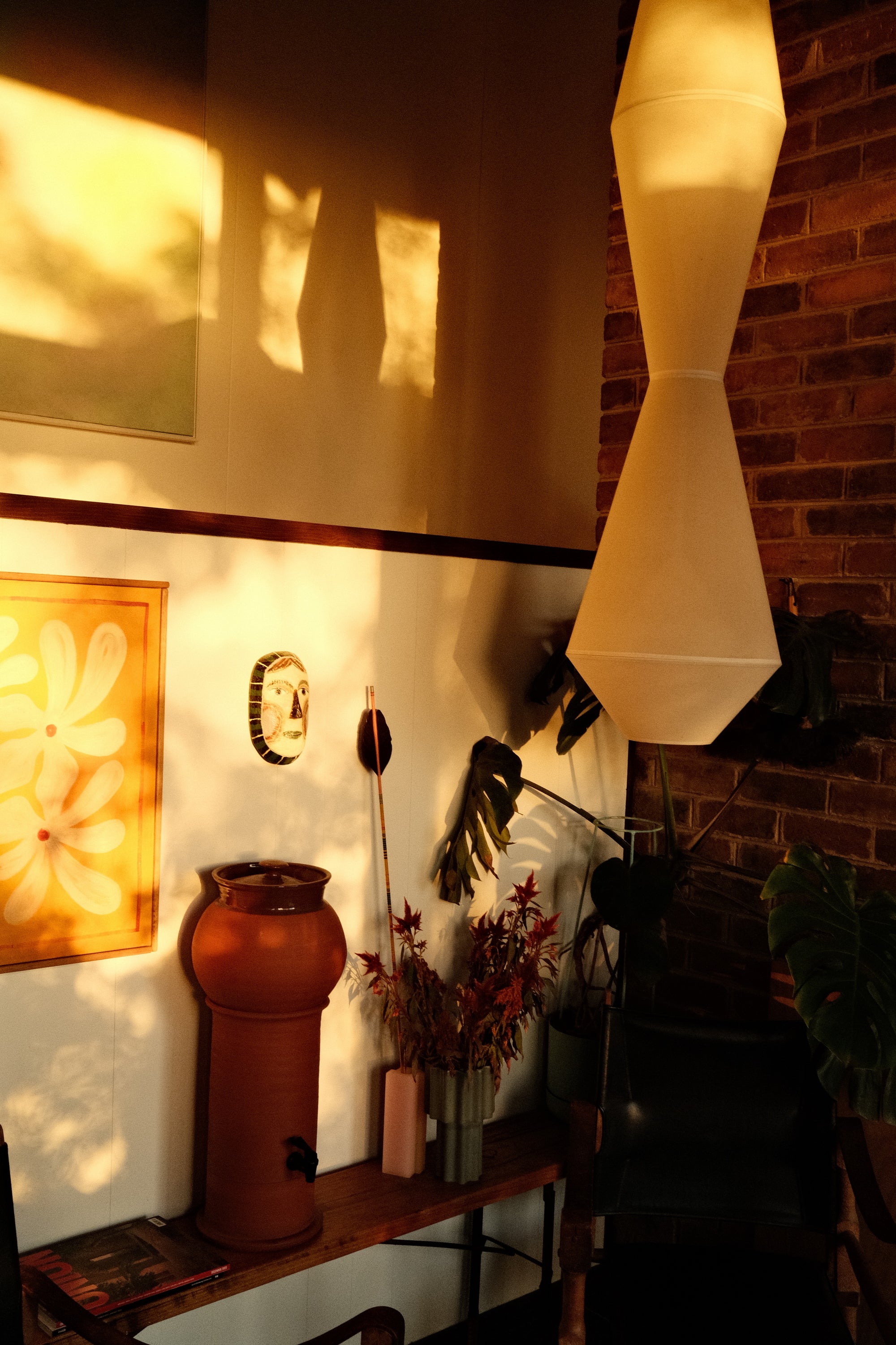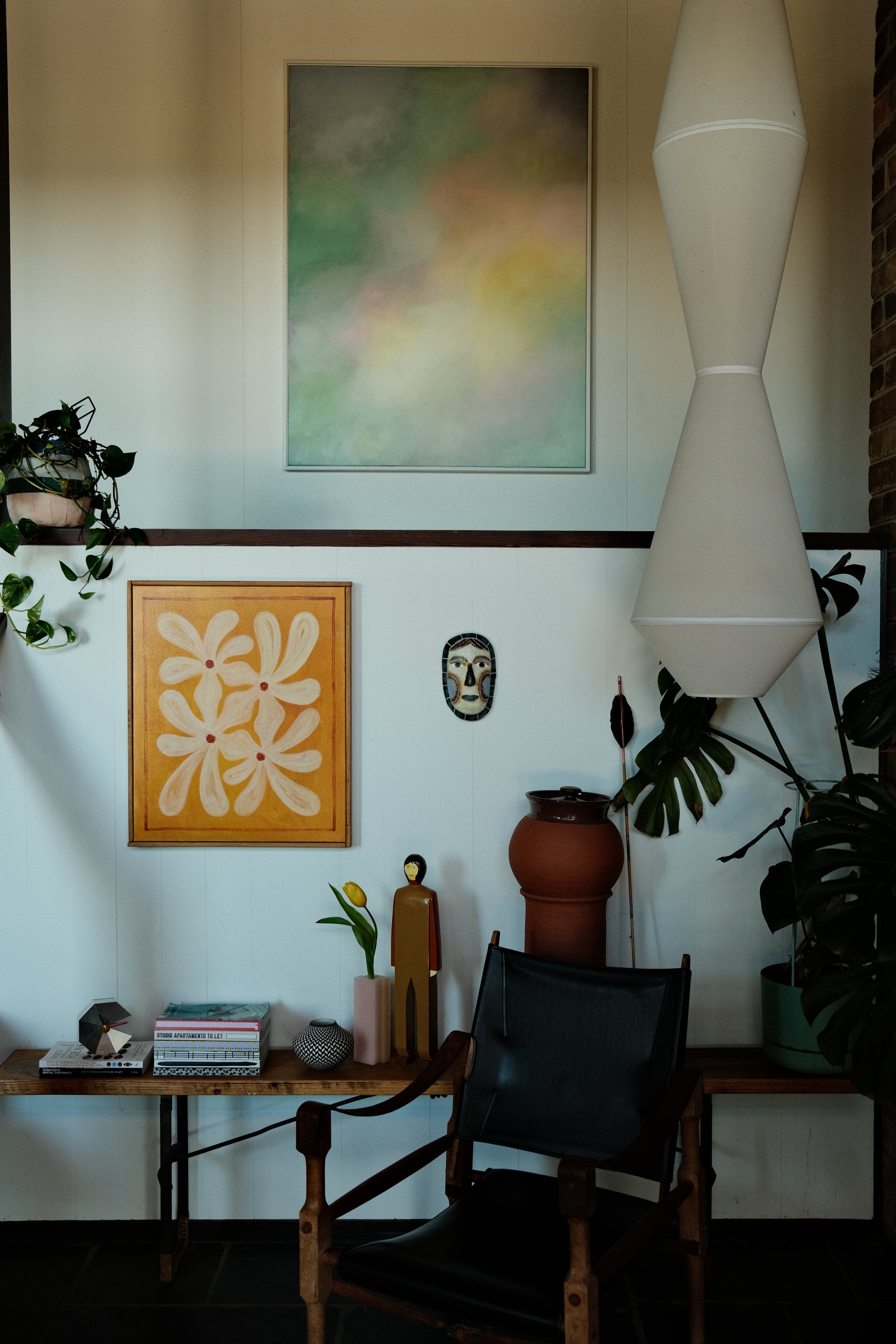 We live in a mid-century home designed by Alistair Knox in leafy Eltham that we purchased in 2017. Haslett and I had been living in Melbourne’s inner north for a decade and moving to the suburbs wasn’t part of our plan, but we fell in love with the home and subsequently the area. We love being surrounded by the bush, having access to the Yarra, and still being able to pop into the centre of Melbourne in 30 minutes. The house has such a warm feeling and holds so much history. We haven’t made a lot of changes inside, but we’ve spent a lot of time landscaping and planting a native garden, adding solar, and most importantly putting in an outdoor tub to soak under the stars. Every room is scattered with our own furniture and lighting designs, the kid’s art and craft, and objects we’ve slowly collected throughout our relationship and travels. It feels very much like home and we’re grateful to be its custodians.